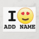 Show who, what or where you love with this custom I Love Emoji postcard. Add your own text to the 'Smiley Face with heart eyes' emoji card. Cute and fun. Spread the Love.