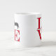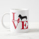 Fun mug for dachshund lovers with the stacked red text "LOVE" and the "O" replaced with a silhouette of a dachshund.