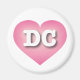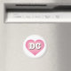 This magnet features a calm, cool pink heart with a white-washed center containing the bold, white upper case letters DC, the official abbreviation for the District of Columbia.