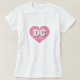 This t-shirt features a calm, cool pink heart with a white-washed center containing the bold white upper case letters DC, the official abbreviation for the District of Columbia.