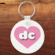 This key chain features a shapely and cool pink heart containing the bold, white, rounded lower case letters dc, a playful abbreviation for the District of Columbia.