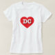 This t-shirt features a vibrant red heart containing the bold, white, upper case letters DC, the official abbreviation for the District of Columbia.