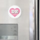 This magnet features a calm, cool pink heart with a white-washed center containing the bold white upper case letters DE, the official abbreviation for the state of Delaware, the first state.