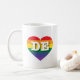 This mug features a rainbow pride heart overlaid by the bold, white, capital letters DE, the official abbreviation for Delaware, the first state. Show your true colors, support marriage equality, and celebrate gay pride.