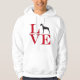 For dog and Doberman lovers. The word "LOVE" is in red and stacked with the "O" replaced with an image of a Doberman. There is also a version for dark colored tees.