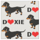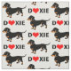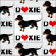 Cute dachshund pattern featuring a black and tan smooth coated Dachshund and the word Doxie with a heart at the center.