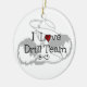 I Love Drill Team with a red heart, florish and hat, boots and poms in the background
