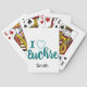 I Love Euchre Personalized Lettered Design | Cute and trendy teal blue lettered design says, "I Heart Euchre". Customize it with your own name or message.