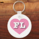 This key chain features a vibrant pink heart containing the bold, white, upper case letters FL, the official abbreviation for the state of Florida, the sunshine state.