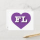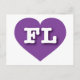 This postcard features a vibrant purple heart containing the bold, white, upper case letters FL, the official abbreviation for Florida, the sunshine state. The reverse side of the postcard is blank, awaiting your handwritten sentiments or customized text.