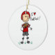 A red uniformed stick figure football player on I Love Football T-shirts, hoodies, mugs, magnets, cards, stickers, bags, mousepads, keepsakes, water bottles, and other football items.