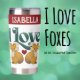 I Love Foxes quote. Show off your love of foxes with this cute and whimsical hand-drawn illustration. Personalize the name and create a fun and special gift. -->> NOTE: Changing the name once will update it on both sides of the cup.