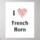 Display your love of music and the french horn with this cool I Heart music poster! A great gift for music teachers, musicians, or music students! The heart is made of treble clefs, bass clefs, and various music rhythm notes all in the shape of a red heart. Keep the text as is or customize to reflect what music instrument, group, or ensemble you love!