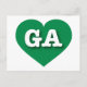 This postcard features a vibrant green heart containing the bold, white, upper case letters GA, the official abbreviation for Georgia, the peach state. The reverse side of the postcard is blank, awaiting your personalized text or handwritten sentiments.
