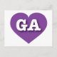 This postcard features a vibrant purple heart containing the bold, white, upper case letters GA, the official abbreviation for Georgia, the peach state. The reverse side of the postcard is blank, awaiting your customized text or handwritten sentiments.