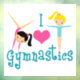 I Love Gymnastics. A pretty gymnastics girl wall decal with adorable teal text in between two tumbling girls and a beautiful pink heart. A cute gymnast present for a kids or women's gymnastic coach.