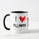 I love Halloween and black coffee text. A heart shaped red bat instead of the word Love. Black and red image of a coffee brewer in the middle. Image of red and black coffee beans above the text And black coffee. Funny one-of-a-kind customizable coffee mug for anyone. You can change everything. Do not forget to choose another style and color of the mug. Use the Customize button to fine-tune the design to your needs. Have fun. Happy Halloween!