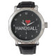 I Love Handball fridge magnet. White lettering and red heart on black background