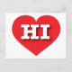 This postcard features a vibrant red heart containing the bold, white, upper case letters HI, the official abbreviation for Hawaii, the aloha state. The reverse side of the card is blank, awaiting your handwritten sentiments or customized text.