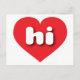This postcard features a vibrant red heart containing the bold, white, rounded lower case letters hi, a playful abbreviation for Hawaii, the aloha state. The reverse side of the postcard is blank, awaiting your handwritten sentiments or customized text.