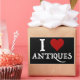 I Love (Heart) Antiques. Funny accessory is a great antique lover gift for a man or woman who loves collecting, thrifting, antiquing & hunting for antiques & collectibles at a garage sale, yard sale, estate sale, flea market, thrift shop or antique store. If you're an antique hunter & collector, and your hobby is finding and shopping for antique furniture, jewelry, art and other vintage items, this design is for you!