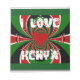 The design features the powerful phrase "I LOVE KENYA" in a distressed, playful font that conveys authenticity and heart. This text is set against a mesmerizing, fractal-like background composed of the Kenyan flag's black, red, and green colors that swirl out from a central red heart. The dynamic pattern also subtly integrates the shape of the Maasai shield and spears, creating a unique, modern, and high-energy piece that pulsates with national pride and love.