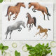 Original fine art design of a variety of horses by equine artist Carolyn McFann of Two Purring Cats Studio printed on a quality, machine-washable kitchen towel by American Mojo.