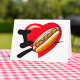 Hotdogs is something a lot of us love. Now you can show how much you love hotdogs with this cool design of a hotdog set on top of a read heart and the letter I so it makes it a I love hotdogs design, yummy. This I love hotdogs design looks great on these greeting cards