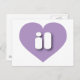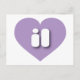 This postcard features a lavender heart containing the bold, white, rounded, lower case letters il, a playful abbreviation for Illinois, the prairie state. The reverse side of the postcard is blank, awaiting your handwritten sentiments or customized text.
