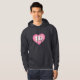 This hoodie sweatshirt features a calm, cool, and collected pink heart with a white-washed center containing the bold white upper case letters IL, the official abbreviation for the state of Illinois.