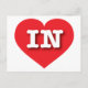 This postcard features a vibrant red heart containing the bold, white, upper case letters IN, the official abbreviation for Indiana, the hoosier state. The reverse side of the postcard is blank, awaiting your handwritten sentiments or customized text.