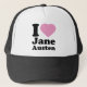 I Love Jane Austen hat. A hat featuring the phrase “I Love Jane Austen,” in Cooper Black font with a pink heart. A great gift for fans of Jane Austen, Pride and Prejudice, and women writers.