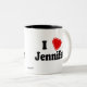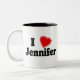 I love Jennifer! Is your name Jennifer? Do you have a husband, boyfriend, male family member or male friend who you know loves you? Or do you have a wife, girlfriend, female family member or female friend named Jennifer whom you love deeply? If so, this "I Love" mug is exactly the gift that you're looking for! The design features the letter "I" in black lettering with a red heart on the top and "Jennifer" in black lettering on the bottom.
