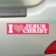 Pink background, white text reads I Love (pink heart) Jesus Christ.