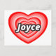 A red heart with the name Joyce in the center. I love Joyce. I heart Joyce. I love you Joyce. A gift for someone who loves Joyce. A valentine for Joyce. Happy birthday Joyce. I'm in love with Joyce. Hello, my name is Joyce.