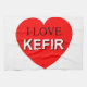 I love kefir. Kefir is a natural probiotic drink made from milk. Red heart image with text.