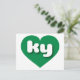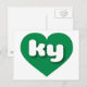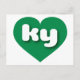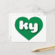 This postcard features a vibrant green heart containing the bold, white, rounded lower-case letters ky, a playful abbreviation for Kentucky, the bluegrass state. The reverse side of the postcard is blank, awaiting your handwritten sentiments or customized text.