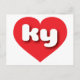 This postcard features a vibrant red heart containing the bold, white, rounded lower case letters ky, a playful abbreviation for the state of Kentucky, the bluegrass state. The reverse side of the postcard is blank, awaiting your handwritten sentiments or customized text.