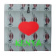 This artwork features a collage of Maasai shields surrounded by a large red heart at the center. The text "I ❤️ KENYA" is superimposed over the heart, creating a striking and meaningful composition.
