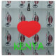 This artwork features a collage of Maasai shields surrounded by a large red heart at the center. The text "I ❤️ KENYA" is superimposed over the heart, creating a striking and meaningful composition.