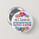 A beautiful way to show your love for knitting. Enjoy this fun design with colorful hearts, flowers and the words - I Love Knitting.