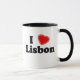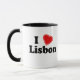 I love Lisbon! Are you from Lisbon, Portugal? Do you have a friend or family member who loves Lisbon, Portugal? If so, this "I Love II" mug that shows love for Lisbon is exactly the gift that you're looking for! The design features the letter "I" in black lettering with a red heart on the top and "Lisbon" in black lettering on the bottom.