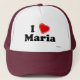 I love Maria! Is your name Maria? Do you have a husband, boyfriend, male family member or male friend who you know loves you? Or do you have a wife, girlfriend, female family member or female friend named Maria whom you love deeply? If so, this "I Love" hat is exactly the gift that you're looking for! The design features the letter "I" in black lettering with a red heart on the top and "Maria" in black lettering on the bottom.