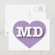 This postcard features a shapely lavender heart containing the bold, white, upper-case letters MD, the official abbreviation of Maryland, the old line state. The reverse side of the postcard is blank, awaiting your customized text or handwritten sentiments.