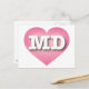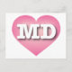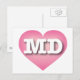 This postcard features a pink heart with a white-washed center containing the bold, white, upper-case letters MD, the official abbreviation of Maryland, the old line state. The reverse side of the postcard is blank, awaiting your customized text or handwritten sentiments.
