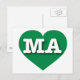 I love Massachusetts - MA green heart Postcard