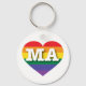 This keychain features a heart with a rainbow stripe design and the bold, white, capital letters MA, the official abbreviation for Massachusetts, the bay state. Show your true colors, support marriage equality, and celebrate gay pride.