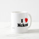I love Mckenzie! Is your name Mckenzie? Do you have a husband, boyfriend, male family member or male friend who you know loves you? Or do you have a wife, girlfriend, female family member or female friend named Mckenzie whom you love deeply? If so, this "I Love" mug is exactly the gift that you're looking for! The design features the letter "I" in black lettering with a red heart on the top and "Mckenzie" in black lettering on the bottom.