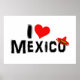 Fun poster featuring the words I heart (love heart) Mexico. With a sweet little sombrero.