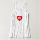 This tank top features a vibrant red heart containing the bold, white, rounded lower case letters mi, a playful abbreviation for Michigan, the Great Lakes state.